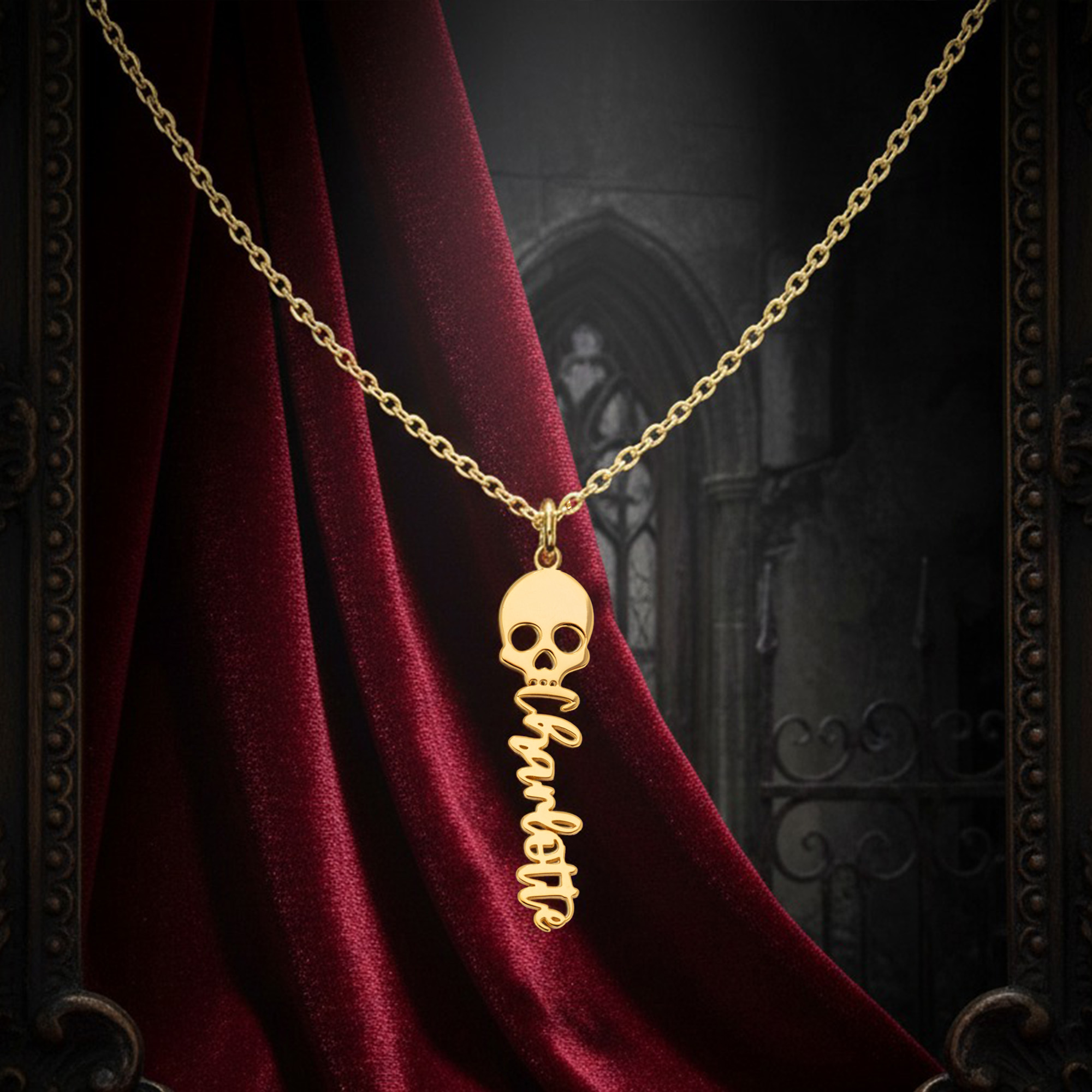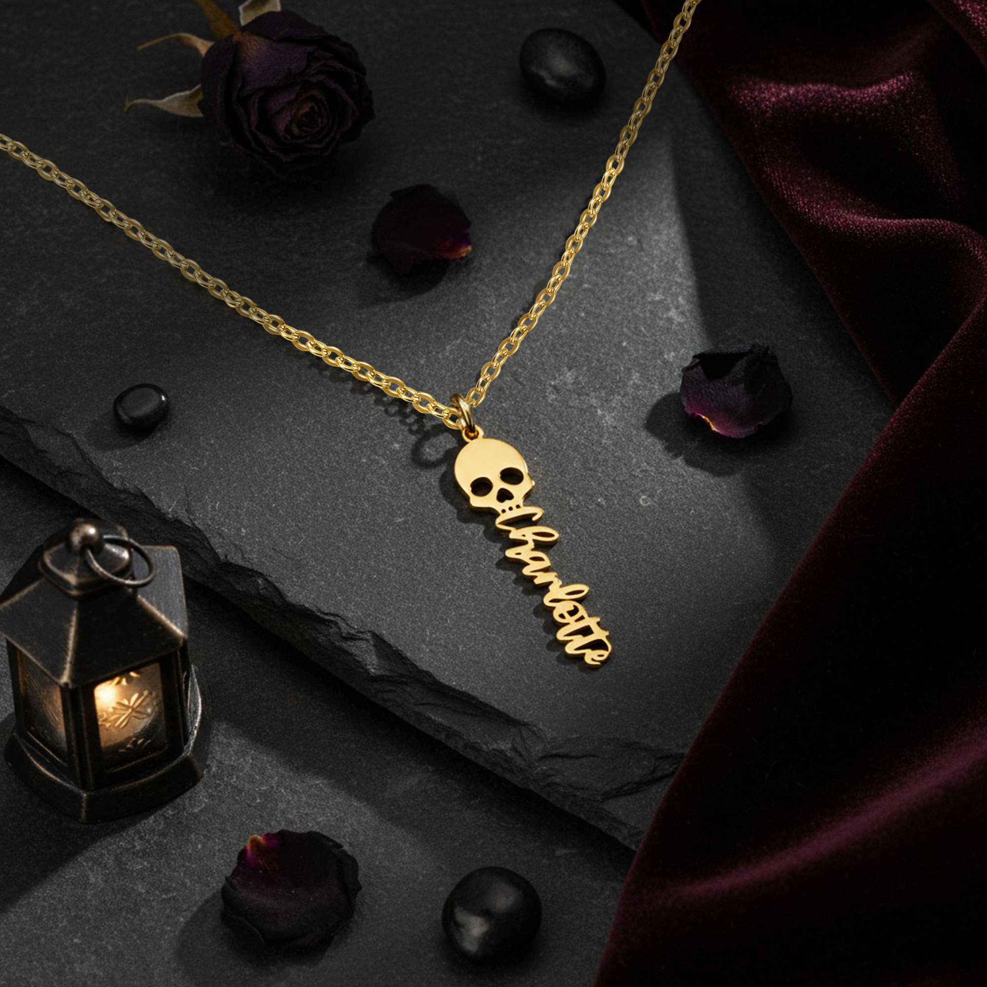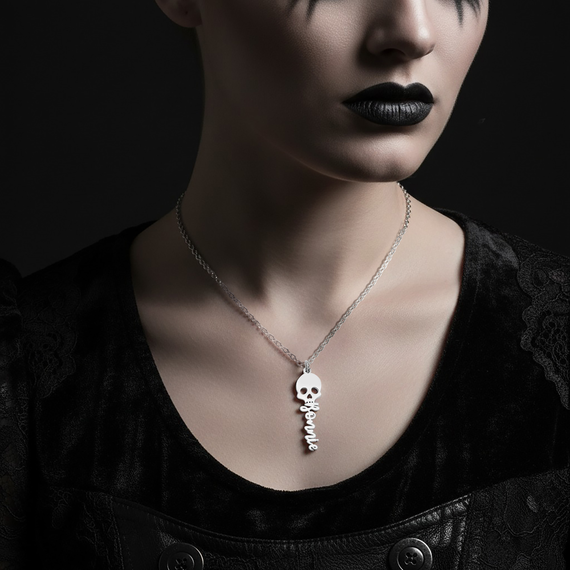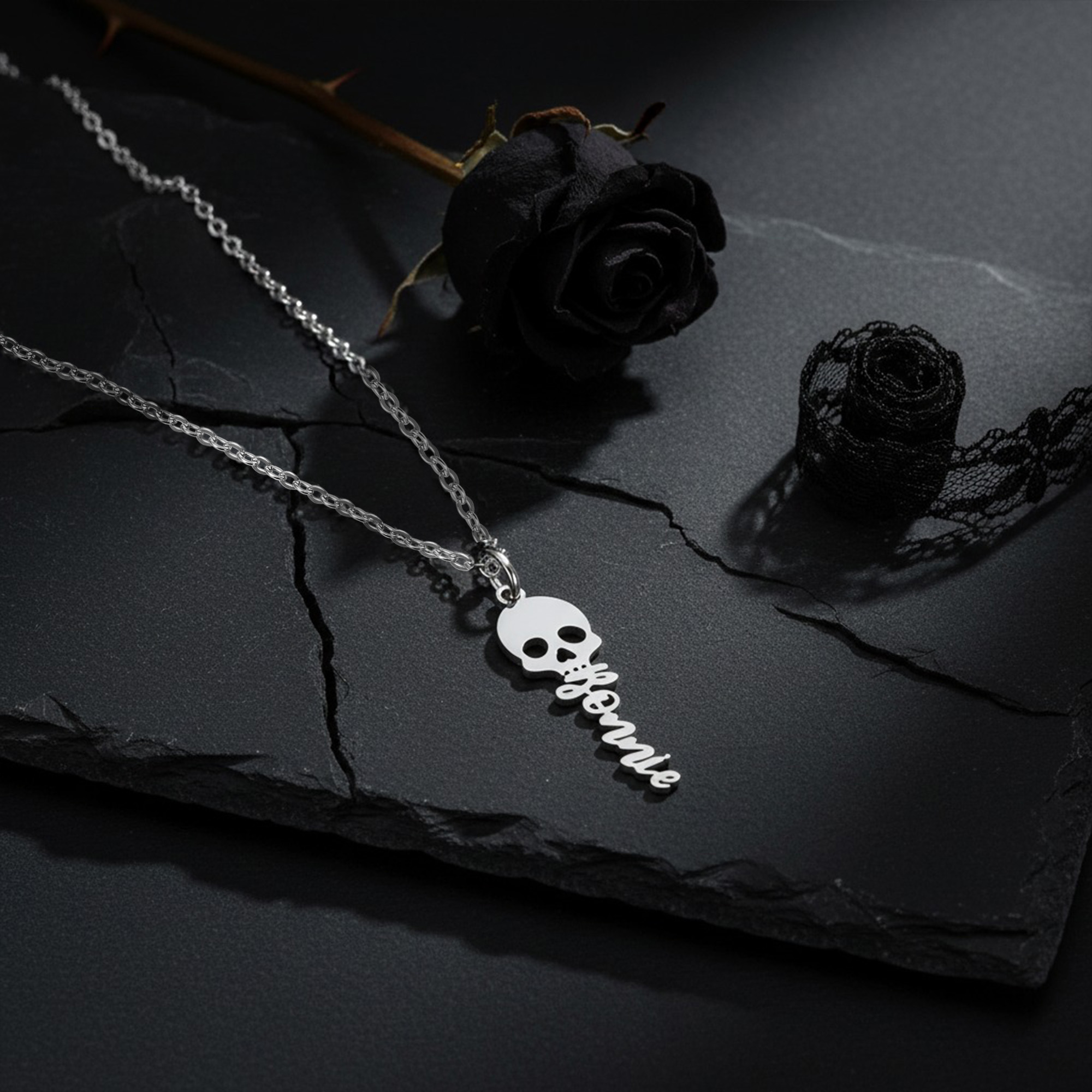 Unique Design - This striking necklace features a custom name pendant with a playful skull charm, perfect for those who love a touch of gothic style. It’s an eye-catching accessory for Halloween or any occasion.