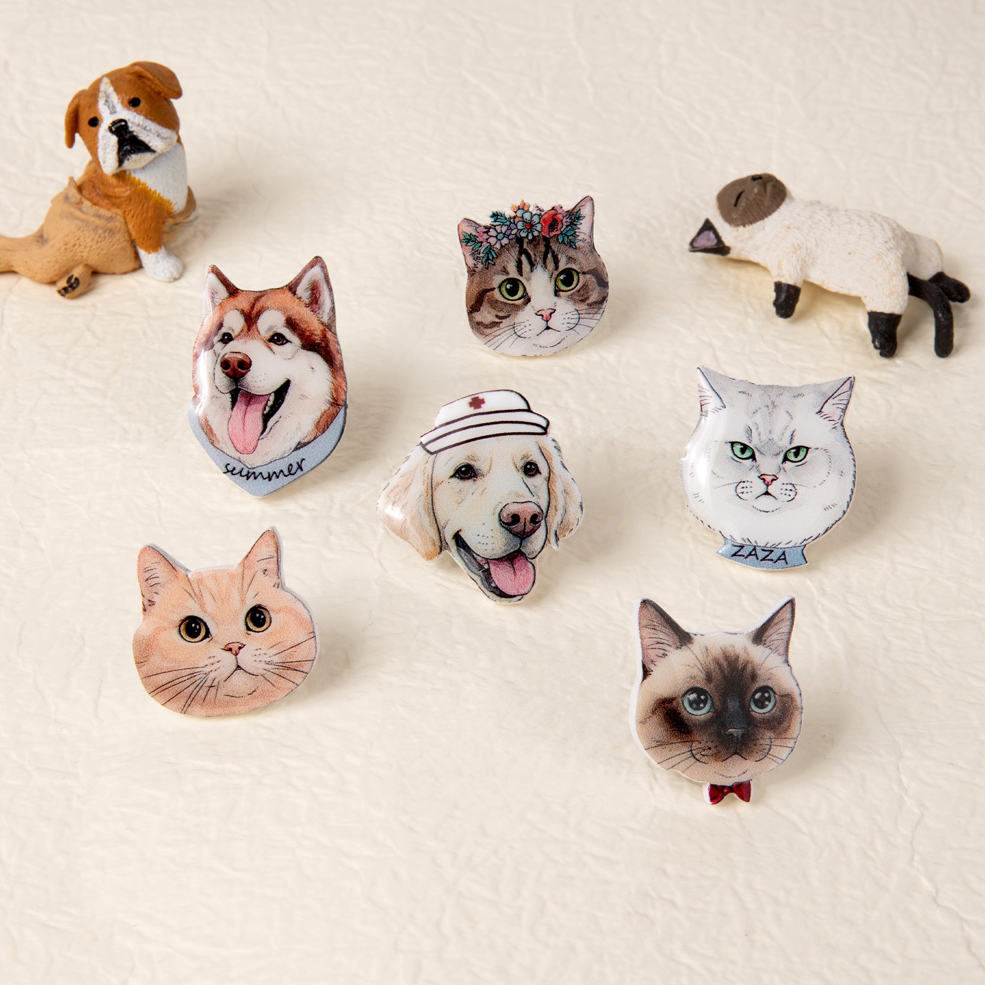 Personalized Name Pet Portrait Brooch, Cute Cartoon Cat/Dog Pin, Hat/Handbag/Purse Accessory, Birthday Gift for Dog Mom/Cat Dad/Pet Lovers/Owners
